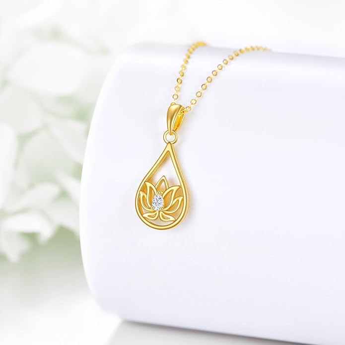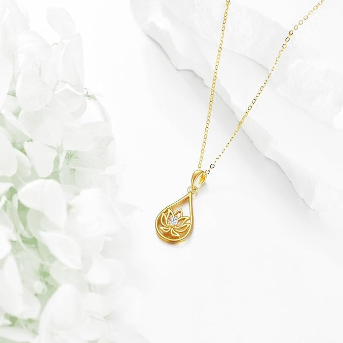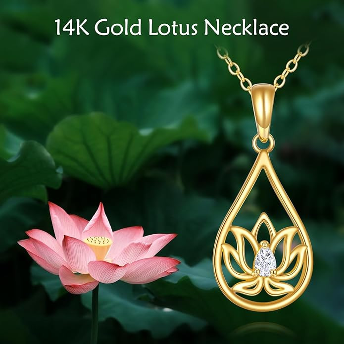 • ? Material: Lotus flower necklace made of 58.5% pure gold (14k real gold, no only plated-gold), hypoallergenic, tarnish resistant,nickel-free,lead-free,cadmium-free,suitable for long-term wear,not contain any allergic element.