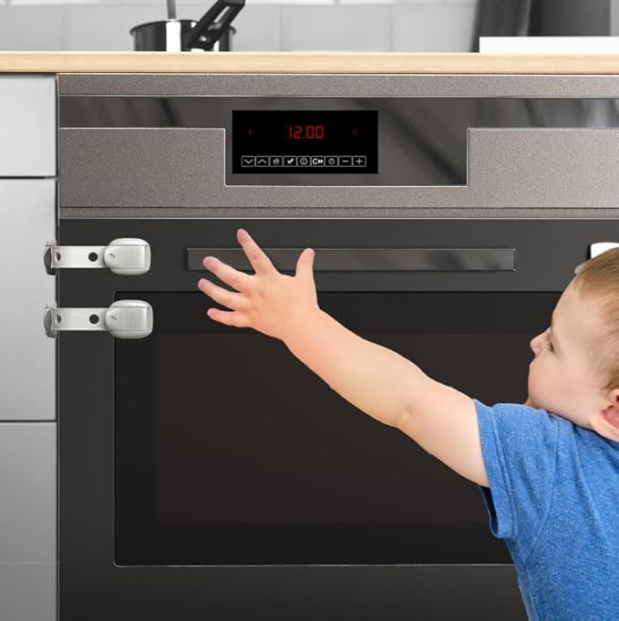 KEEP BABY SAFE - Ensure your child's safety with this innovative oven lock set. The multi-purpose locks can secure ovens, furniture, kitchen cabinets, toilet seats, and more, providing peace of mind for parents.Keep your little ones protected from potential hazards with this convenient 5-pack of oven locks. It is easy for adults to open while extremely difficult for toddlers.