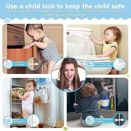 • ?【Multipurpose Use】Flexible and adjustable length strap works on both flat surface and around corner.Our baby locks can be used on drawers, cabinets, refrigerators, microwaves, bedside tables, toilets, medicine storage cabinets or detergents. The double-sided adhesive guarantees optimal hold on any type of material such as wood, glass, iron, plastic, etc.