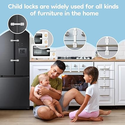 • ?【Premium Quality and Adjustable Length】Our multifunctional baby safety locks are made from super strong and robust ABS+TPE plastics, which is soft and tough, not easy to deform, and this materials contain no nasty chemicals that can affect your child’s health and development. baby lock are adjustable from 1.2" to 7" - secure almost any size appliance & furniture.