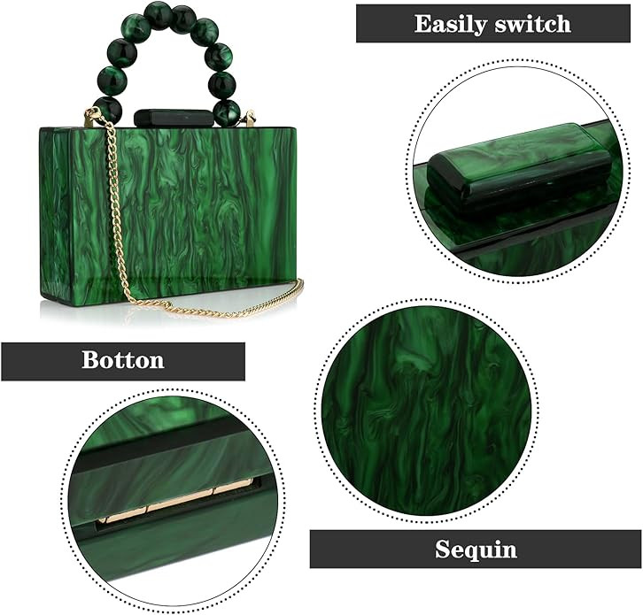 • 【Material】-The richness of the emerald green is unparalleled. It gleams and glints, evoking images of precious gemstones, turning heads wherever I go.The beaded handle is a touch of genius, enhancing its allure. As someone with a penchant for distinctive purses, this one truly steals the limelight. It's not just a purse; it's wearable art.