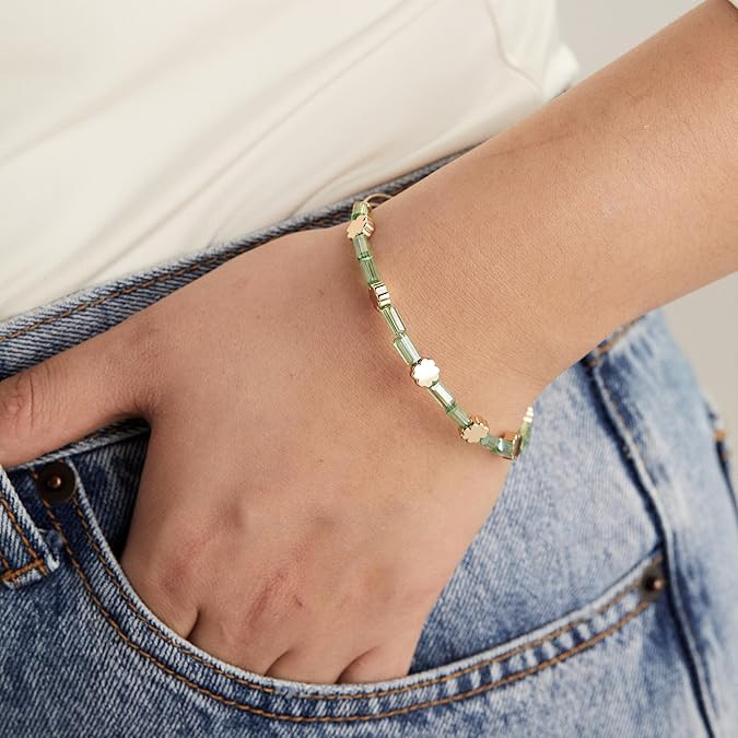 Alex and Ani Clover + Crystal Accent Beaded Bangle Bracelet