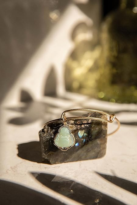 • Meaningful charms: This beautiful adjustable bangle has a dyed stone capturing the essence of Jade in an etched Buddha charm on our classic charm bangle