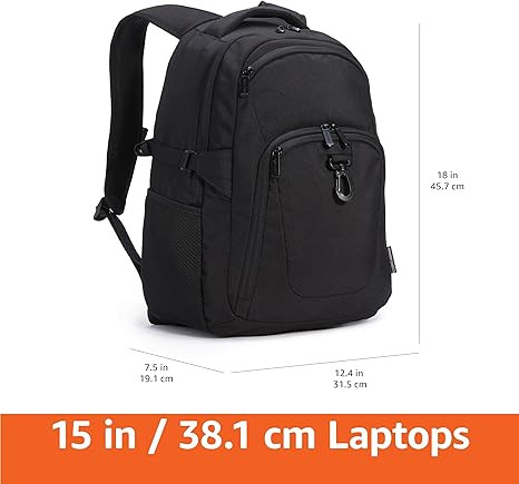 Amazon Basics Travel Laptop Backpack 15.6 inch Laptop, Black