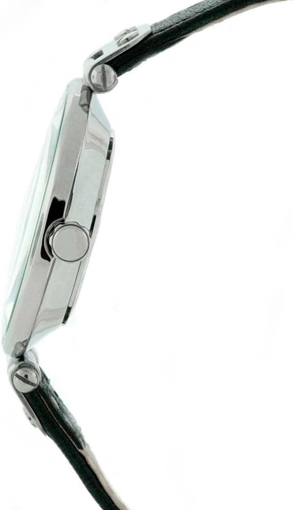 • Glossy white dial with silver-tone hands and markers; black printed inner minute track