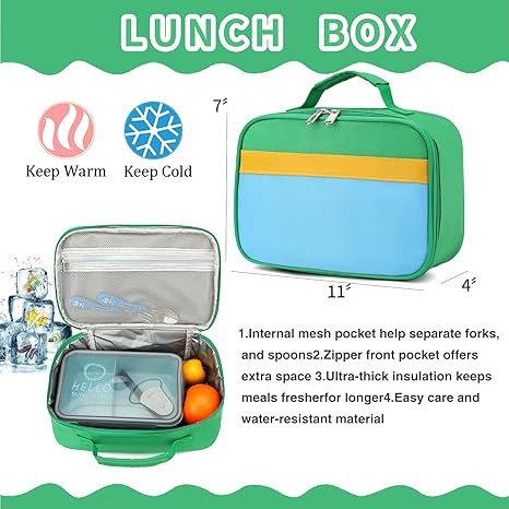 Backpack Set for Girls Boy Kids Backpack with Lunch Box for Elementary Primary Kindergarten School Bag (Green Blue Set, Large)