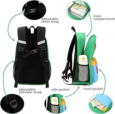 • 【WELL CONSTRUCTION】:One main compartment, front pocket,two side pockets. Roomy to fit books, pens, pencil case, snacks, and toys,water cups, umbrellas. Fit your kids daily essential needs.