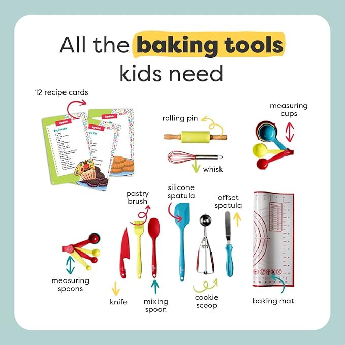 BPA-FREE AND DISHWASHER-SAFE: All kids kitchen tools in the Baketivity 31-piece kids’ baking set are non-toxic and food-grade. Little helpers can have their own cooking set for kids that is safe, durable, and dishwasher-safe.