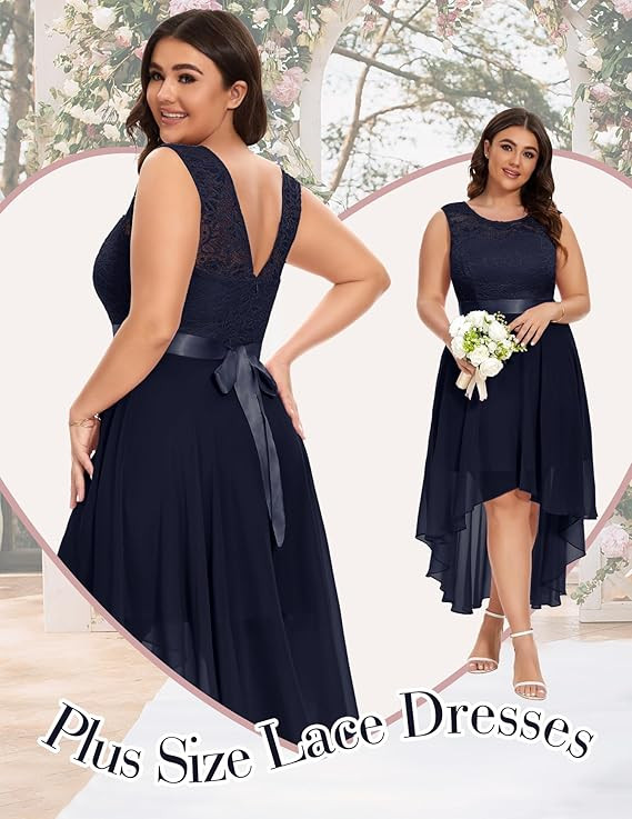 • Wedding Guest Dress - It is a flattering midi dress perfect for a wedding that mainly convinces us with its romantic and gorgeous look. This hi low lace dress features satin belt, lace top, sleeveless design, sexy deep V back, simple color, which accentuate your perfect figure.