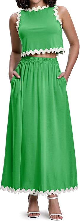 • CHIC FEATURES: This matching set features a high waist maxi skirt paired with a cute crop top, show off your body proportions, creating a chic and elegant look. Delicate ric-rac trim adds style to the maxi skirt set. And the flowy skirt with side pockets provides enough space to hold little things.