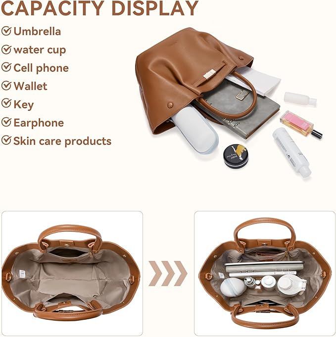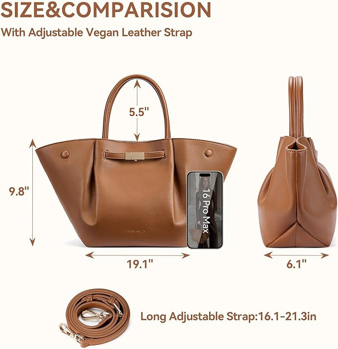 • Adjustable Shoulder Strap: Featuring a detachable and adjustable leather strap (41.73”-50.79”), this large tote bag effortlessly transitions between a shoulder bag and a top handle satchel bag. Its adaptable design makes it an ideal companion for city walks, travel, or everyday use