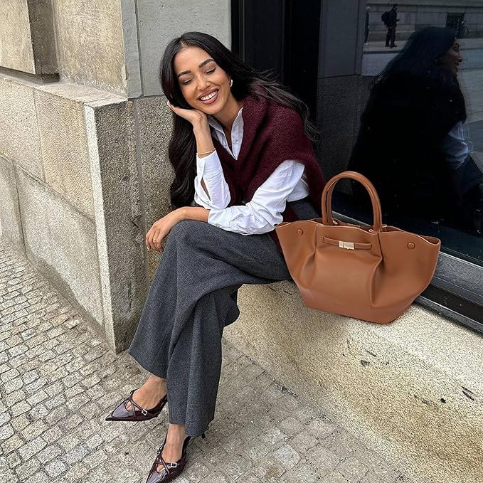 • Designer Tote Bags: This work tote bags for Women showcases a stylish leather texture and a padded top handle, combining elegance and practicality. The shape of this polene bag has a strong sense of design, whether for daily work, casual outings, or evening gatherings, complements any outfit with ease