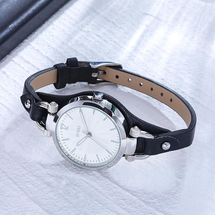 • Comfortable Leather Band: The hole buckle design is easy to wear or unlocked. It has a very comfortable wearing experience.It is easy to wear and not feel heavy.