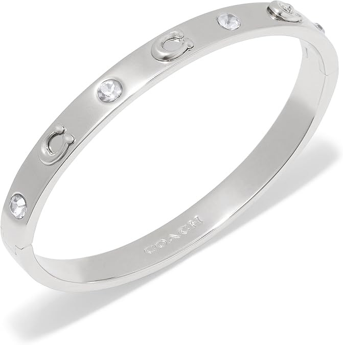 • EDITOR'S NOTES : Everyday hinged bangle bracelet featuring signature sculpted C motifs and minimal stones. Bracelet has an easy hinge closure. Comes packaged in a COACH gift box. Made from brass and glass crystal.