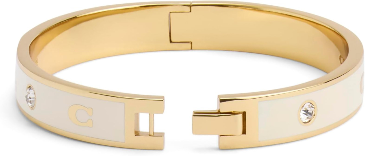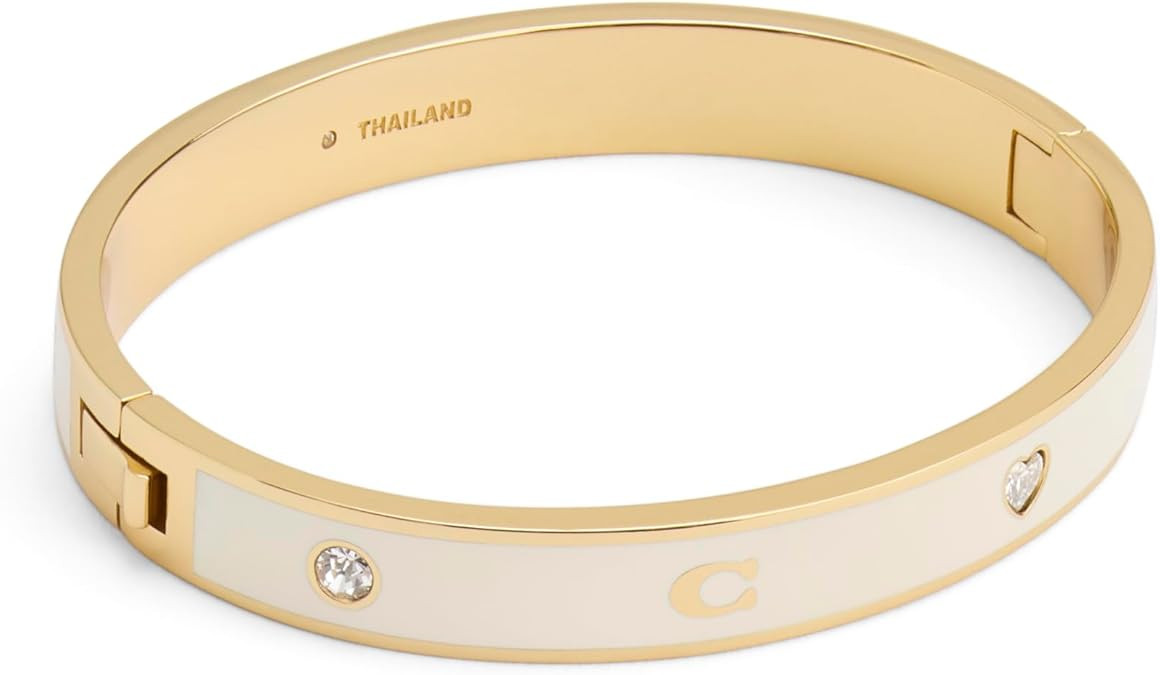 • EDITOR'S NOTES : Everyday bangle bracelet featuring iconic, horse & carriage motif, signature sculpted C and tea rose, and minimal stones. Includes signature COACH jewelry pouch.