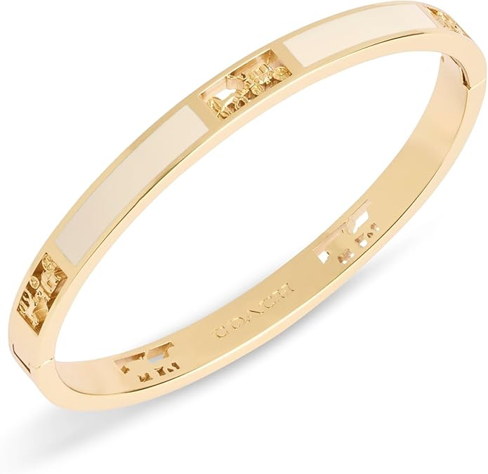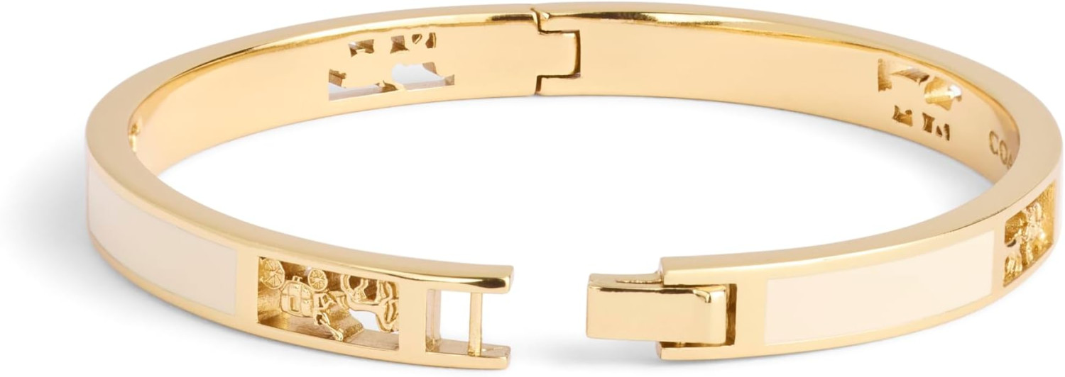 • EDITOR'S NOTES : Everyday neutral chalk enamel hinged bangle bracelet featuring iconic horse & carriage motif cut outs. Includes signature COACH jewelry dustbag.