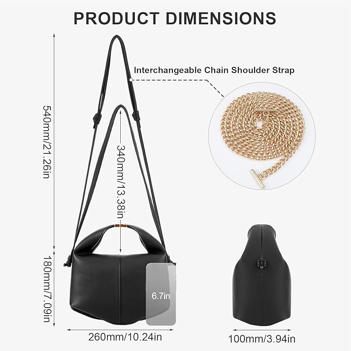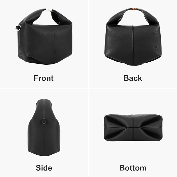 • 【Versatile Carrying Options】You can carry this vegan leather bag by hand, on the shoulder, or wear it crossbody. The top handle can be fastened, giving the bag a unique dumpling-like shape when opened.