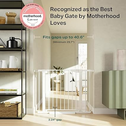 【Convenient Walk-Through Design】The large and wide design measures 30.5 inches in height and 29.7-40.6 inches in width; The large walk-through gate creates a 23.6-inch wide gap, making it easy to walk through while holding your baby