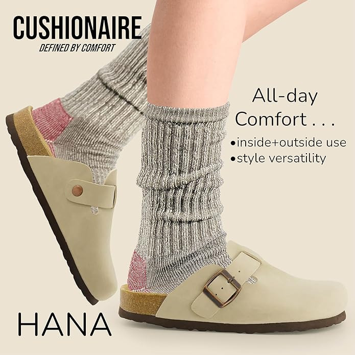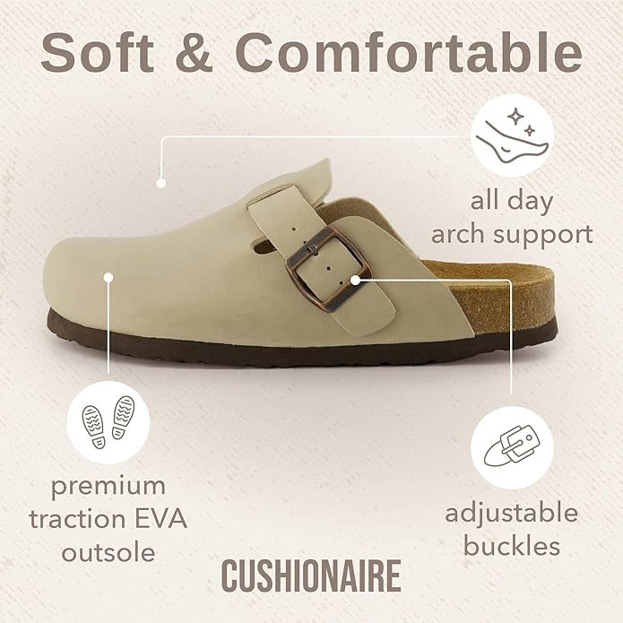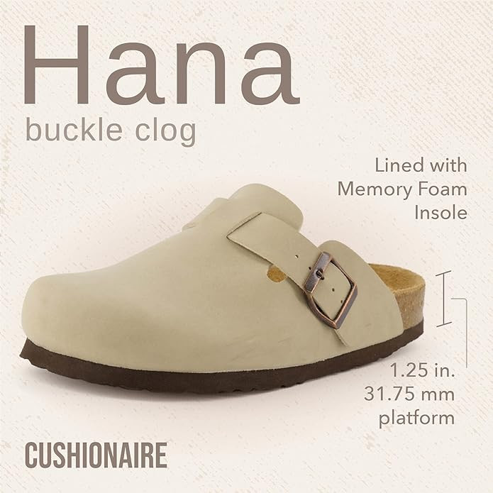 CUSHIONAIRE Hana Slip-On Buckle Clog with Cork Footbed +Memory Foam, Wide Widths Available