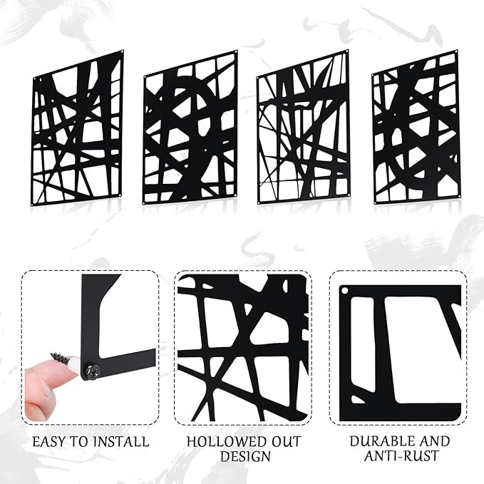 • Modern Geometric Design: Enhance your space with these sleek and stylish black metal panels featuring unique geometric cut-out designs. Perfect for adding a contemporary touch to any room.