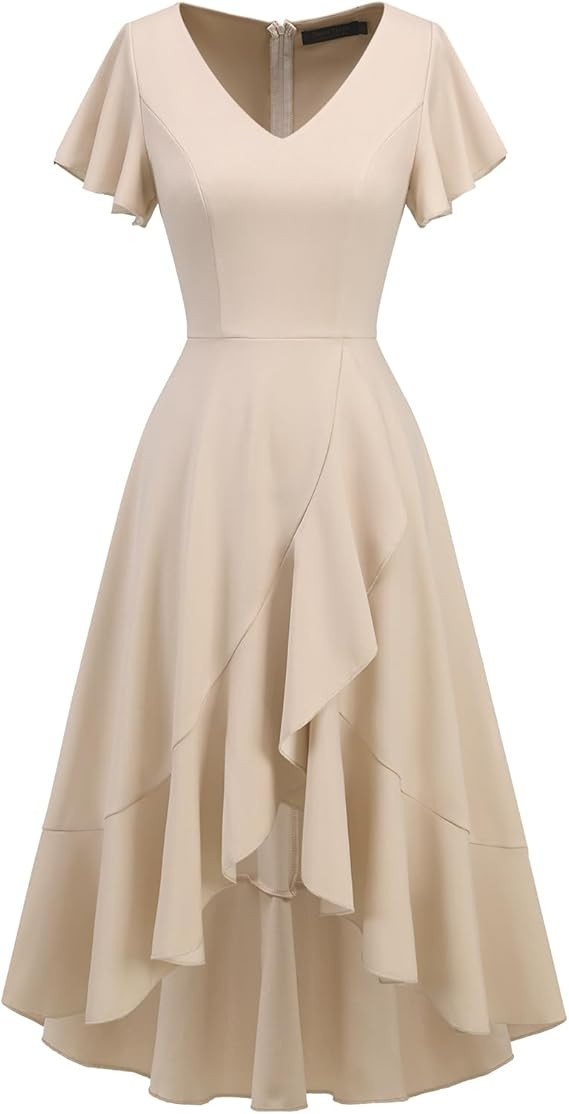 • Cocktail Dresses: Wedding guest elegant Formal Gowns and Evening Dress with wrap hem,v neck ruffle dress, knee length midi flowy dress, A-line prom dresses, mother of the bride dresses, Vintage dress and semi formal dresses for women
