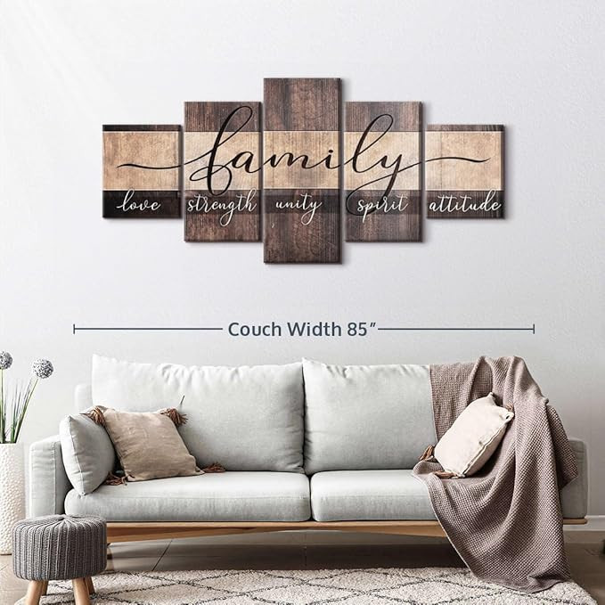 Elephant Stock Multi-Piece 5 Panel Family & Home Typography Art Prints - Wall Decor, Wall Art - Artwork for Walls - 74" X 34"