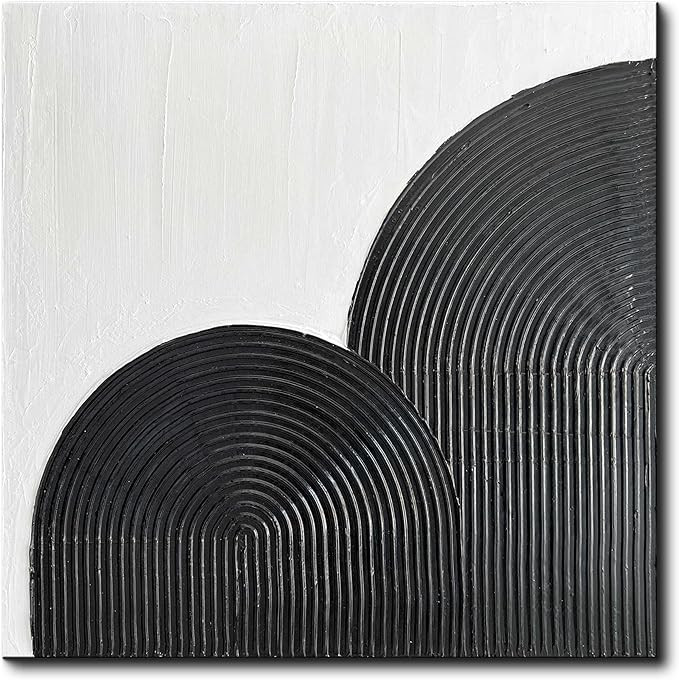 Eonzeun Hand-Painted Black and White Textured Wall Art 24x24 inch,Modern Minimalist Abstract Canvas Oil Painting for Wall Decorations