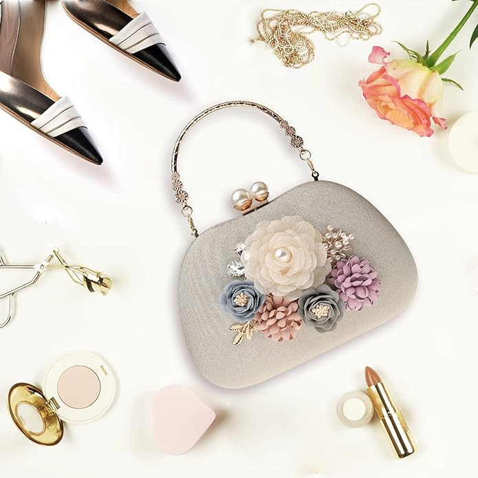 • Beautiful Design: This Evening handbags for women Adorned with lifelike flowers, this clutch featuring a delicate pearl clasp could bringing nobility to you, show your femininity in a crowd
