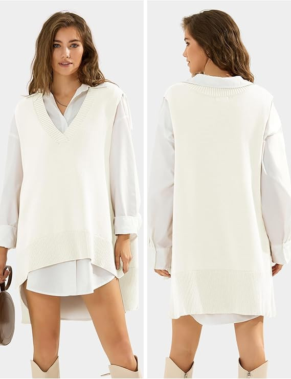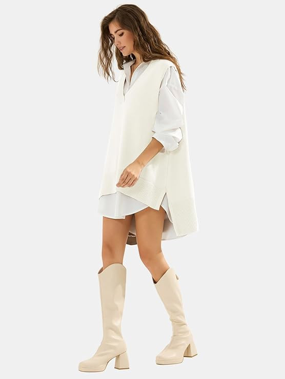 EXLURA Womens Oversized Sweater Vest Knit V Neck Tunic Casual Sleeveless Long Pullover Tank Tops Winter Spring Trendy 2025