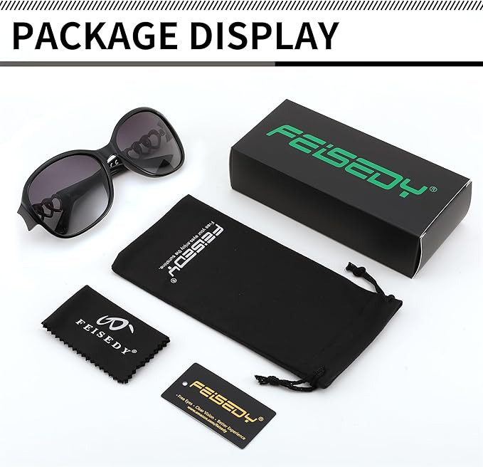 • UV400 & Polarized LENS: FEISEDY polarized sunglasses are equipped with extremely protective lenses, which can help you block 99% of harmful UVA and UVB rays and are anti-polarized, protecting your eyes and keeping them comfortable.