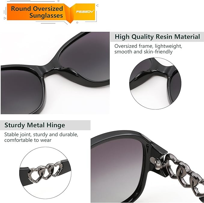 • FASHIONABLE DESIGN: We use the retro-style women's sunglasses frame and incorporate a unique metal bracket design to make your fashion style avant-garde and the best way to show your high-end taste.