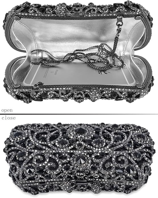 • Beautiful pewter rhinestone evening bag, perfect for weddings, parties, or a luxury night out. All the crystals are manually embedded onto the clutch, ensuring secure and accurate placement.