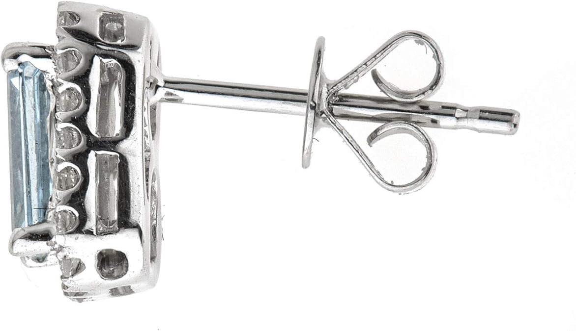Gin & Grace 14k White Gold Genuine Aquamarine Diamond (SI1) Stud Earring for Women