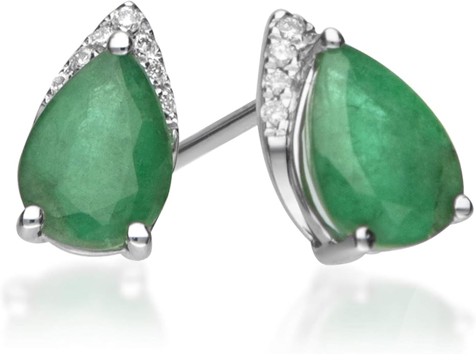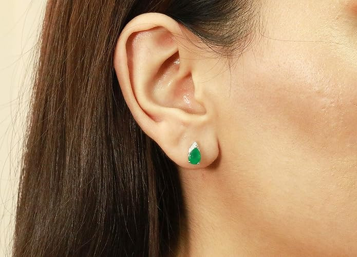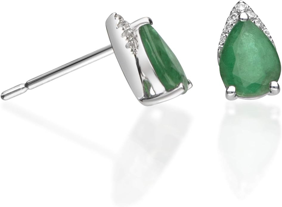 • VALUE: Throughout the history, emerald stone has symbolized true love and abundant wealth. It has a striking green color that relates emeralds to the beauty of nature, hope, renewal, and growth. Indulge in this beautiful Natural Emerald earring for women made of Premium 14K White Gold for a durable and hypoallergenic wear. Accented with Natural Diamond, 0.04 Carat, H-I Color, I1 Clarity. The Earring has 1.0 GM Gold and 1.28 carat Pear-cut Natural Zambian Emerald.