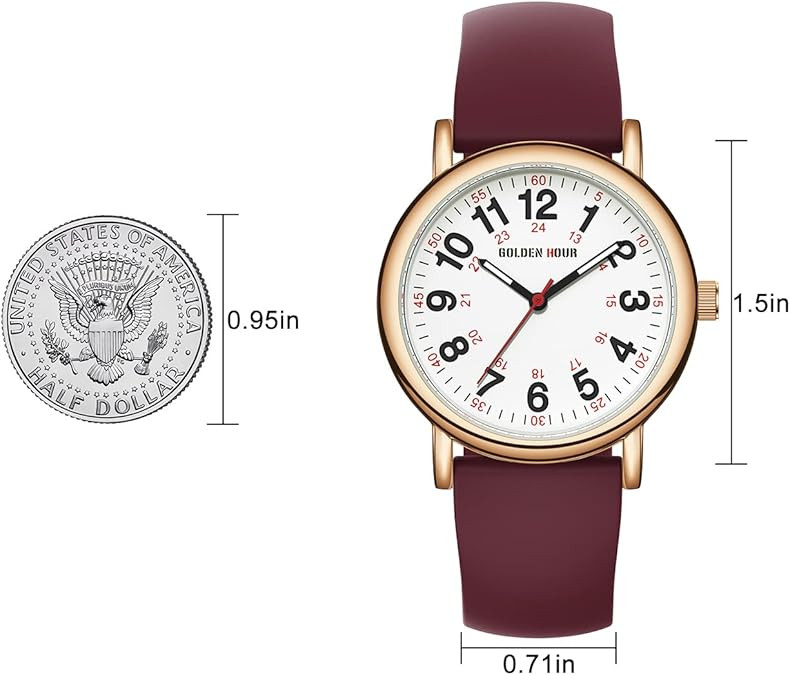 GOLDEN HOUR Waterproof Nurse Watch for Medical Professionals, Students Women Men - Military Time Luminouse Easy Read Dial, 24 Hour with Second Hand, Colorful Silicone Band