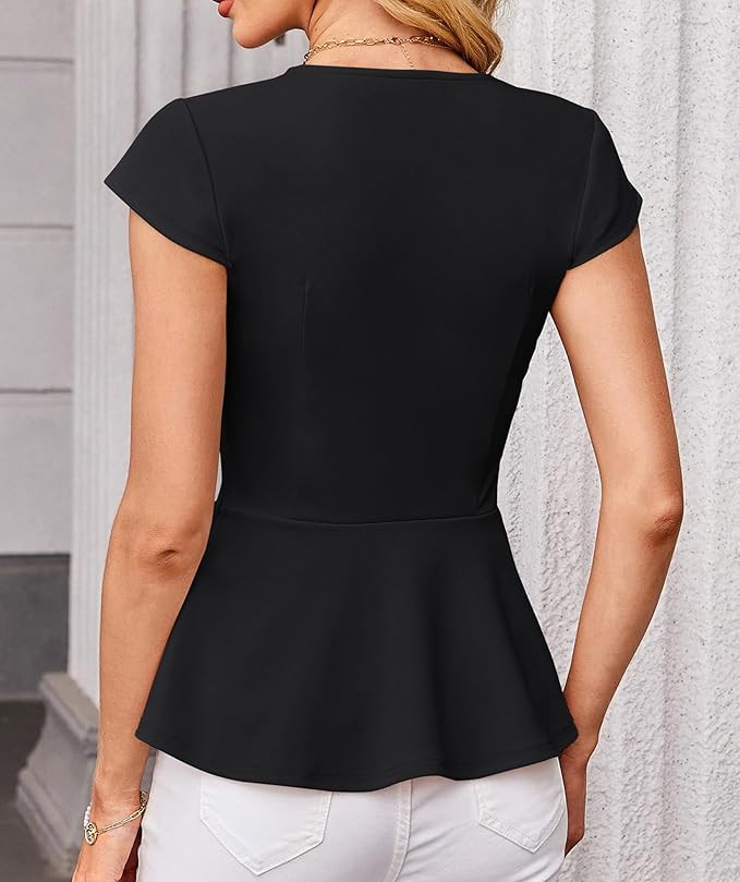 GRACE KARIN Women Dressy Peplum Tops 2025 Summer V Neck Cap Sleeves Fitted Casual Business Work Blouse