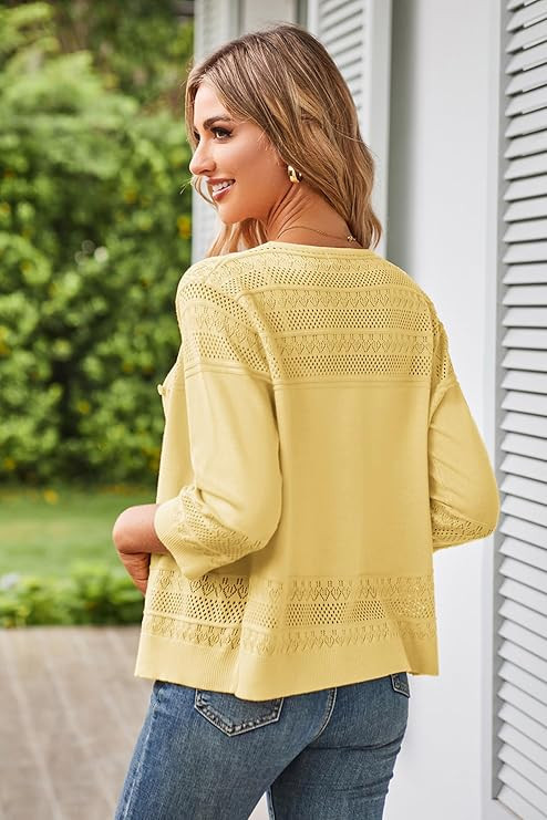 • Features: This summer lightweight cropped cardigans sweater features with charming crochet pattern, button placket, flattering 3/4 sleeve, draped open front cardigan. Adding a touch of elegance and femininity for you