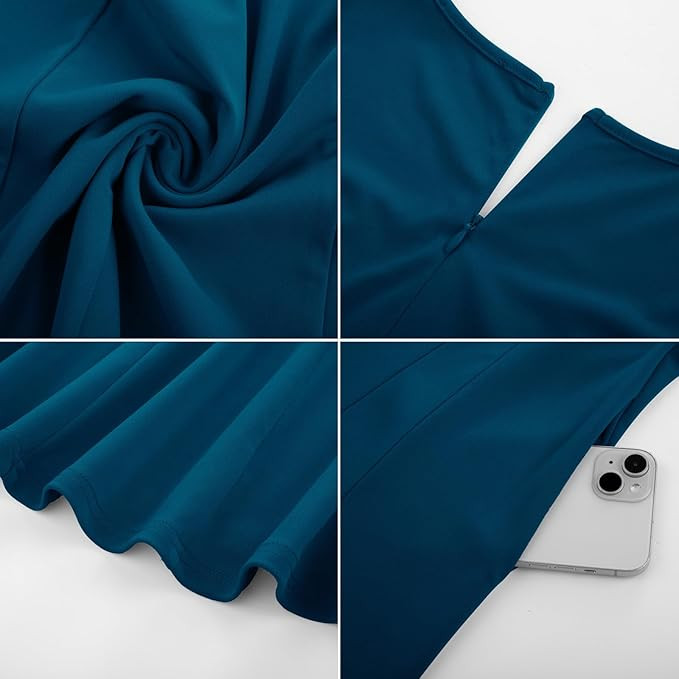 • Features: zipper at back, a-line, square neck, casual/formal style, sleeveless, loose fit, two side pockets, swing hem, and pleated t-shirt flowy tank dress with a simple and classy design. Medium Stretch, Suit For Summer And Other Seasons. The flare design of the pleated midi dress also highlights your uniqueness.