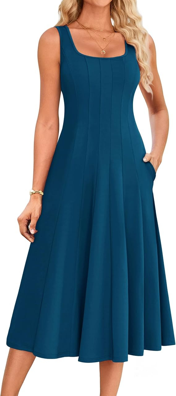 • Easy to match: This women's sleeveless midi dress is suitable for lounging at home, but you can also dress it up with heels, sandals, a belt, and sunglasses, or pair it with mules and layered necklaces for a stunning look. You can also layer it with a jacket for added warmth and style in spring, autumn,or winter. The square neck design of this stylish casual dress lets you showcase different vibes in various settings.