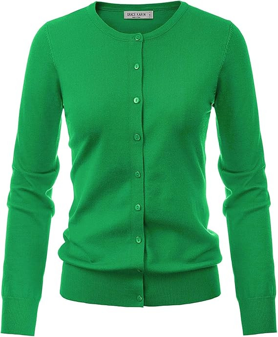 GRACE KARIN Women's Classic Long Sleeve Knit Cardigan Sweaters Casual Open Front Button Down Cardigan S-3XL