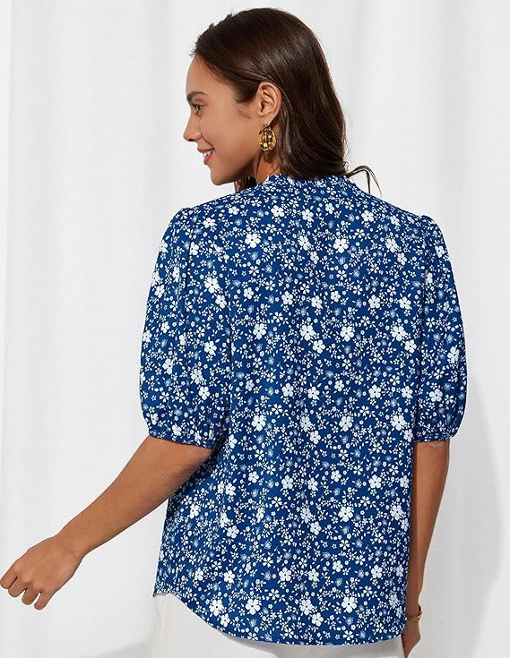 • Size Guide: S = US 4-6, M = US 8-10, L = US 12-14, XL = US 16, 2XL = US 18. This floral top fits true to size, so please order your usual size. This puff half sleeve summer top is made from breathable chiffon fabric, which is durable and easy to wash, making it a practical choice for everyday wear and bring you a comfortable dressing experience.
