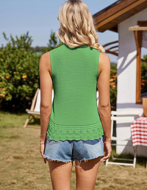 • Features: women’s sweater vests, crochet tops for women, sleeveless button down sweater, cropped open front, v neck knit vest, boho style, solid color. Uniqe scallop hem with hollow out detail, it can also be a sexy bohemian vacation top, versatile and special.
