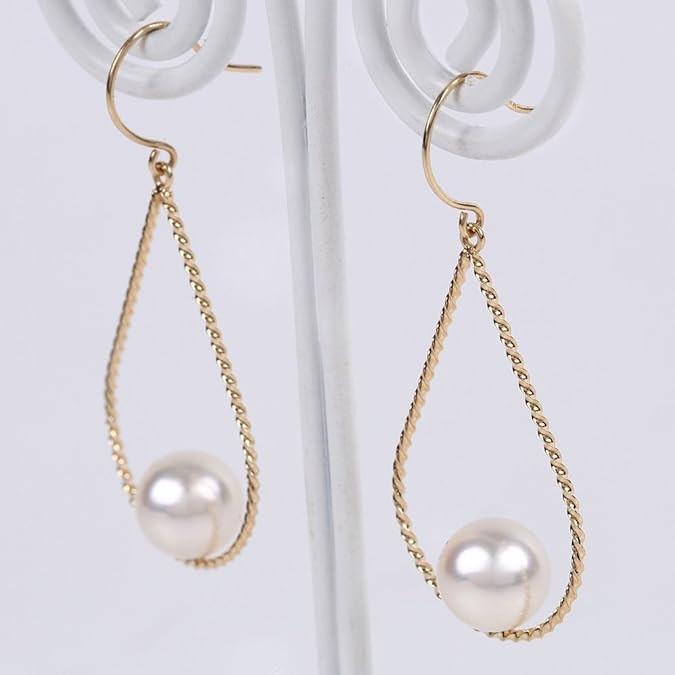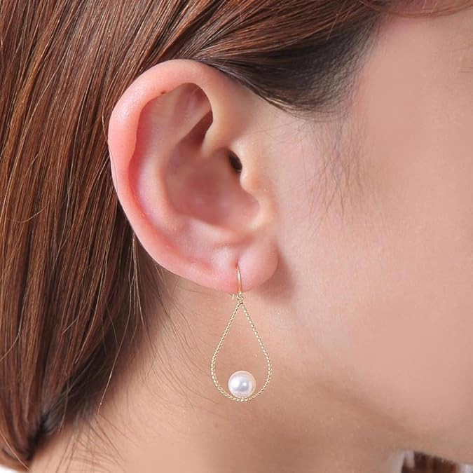 Japanese 6.5mm Akoya Cultured Pearl Dangle Earrings for Women with 18K Yellow Gold | Stylish Design Excellent Gift | Pearl Earrings