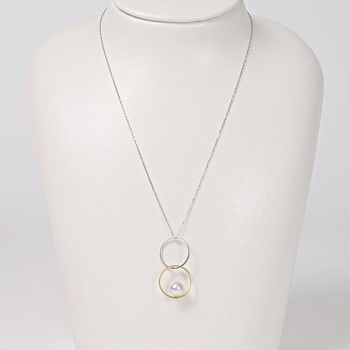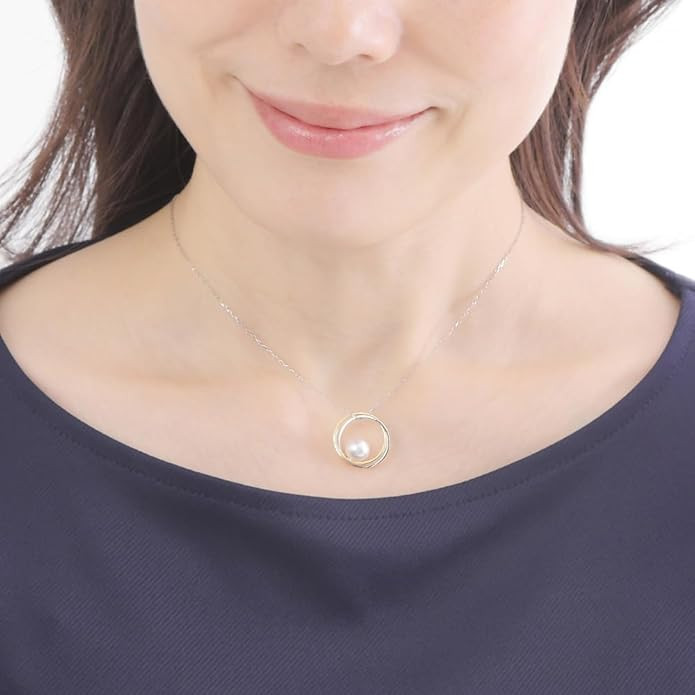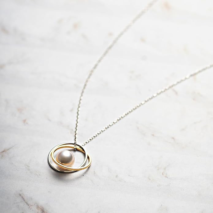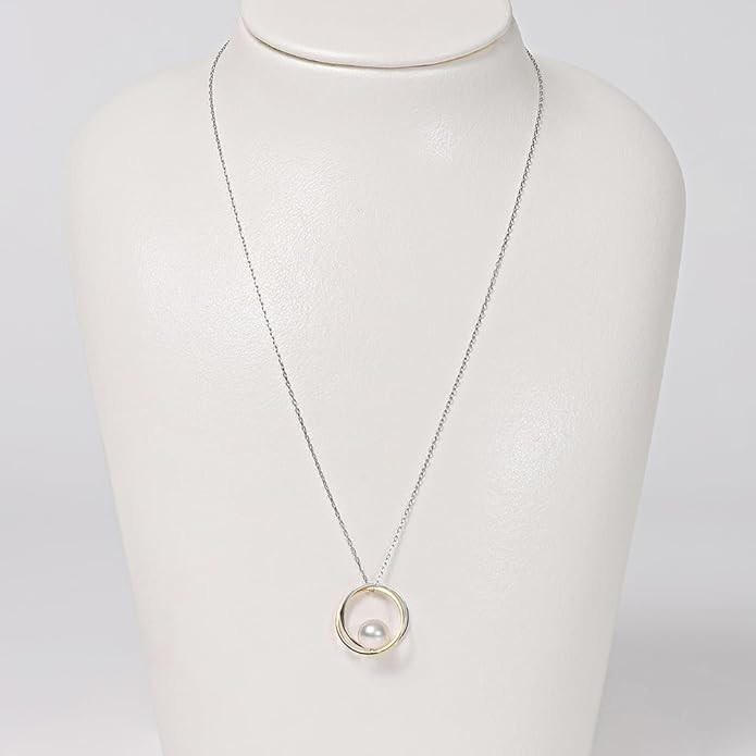 Japanese 7.0mm Akoya Cultured Pearl Long Chain Pendant Necklace for Women with PT900 Platinum and 18K Yellow Gold | Elegant Design Excellent Gift | Pearl Necklace, 23.6 inch, white