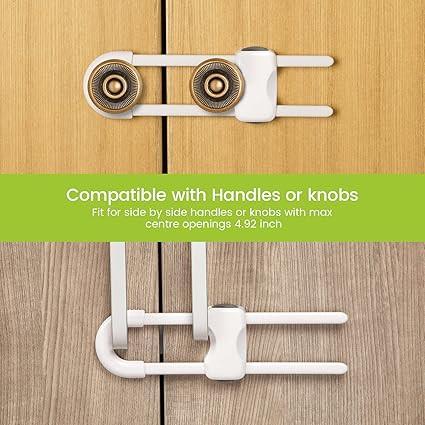 Sturdy ABS material: made of quality ABS material ensuring more durability, the child safety cabinet lock is designed to work well with cabinets or cupboards with knobs or handles in a row; Please be in mind that the sliding cabinet lock is adjustable, and ensure knobs are less to 4.7 inches/ 12 cm between each other