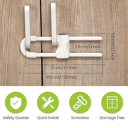 Quantity: you will get 10 pieces u shape child cabinet locks, enough quantity for you to prevent your little baby or smart baby from reaching off-limit rooms, keeping them safe with closet, cupboards or fridges that are filled with stuff that may cause harm to your babies; And helpful in preventing for babies or pets from messing up your cabinet even the house, these cabinet sliding cabinet latch is childproof and petproof
