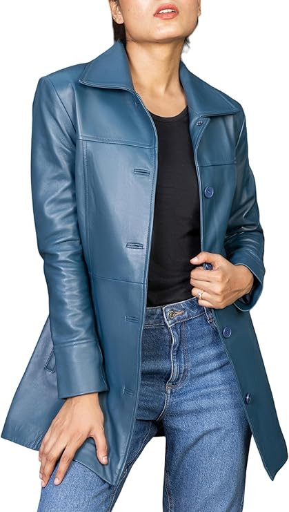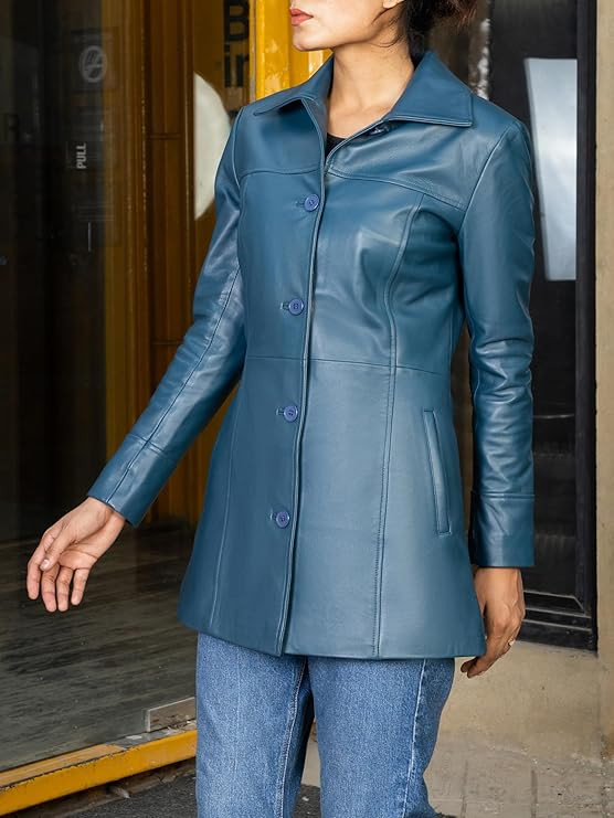 Jild Casual Car Coat Lambskin Leather Jacket Women – ¾ Length Blazer Overcoat Style Leather Long Coat Women