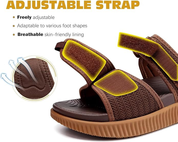 【Ergonomic Lightweight Sandals】rolling balance design and widen sole better fits the foot movement and reduces the chance of foot damage. Soft memory foam footbed and heel cup cushioned give sandles extra cushioning and better foot care for all day walking.