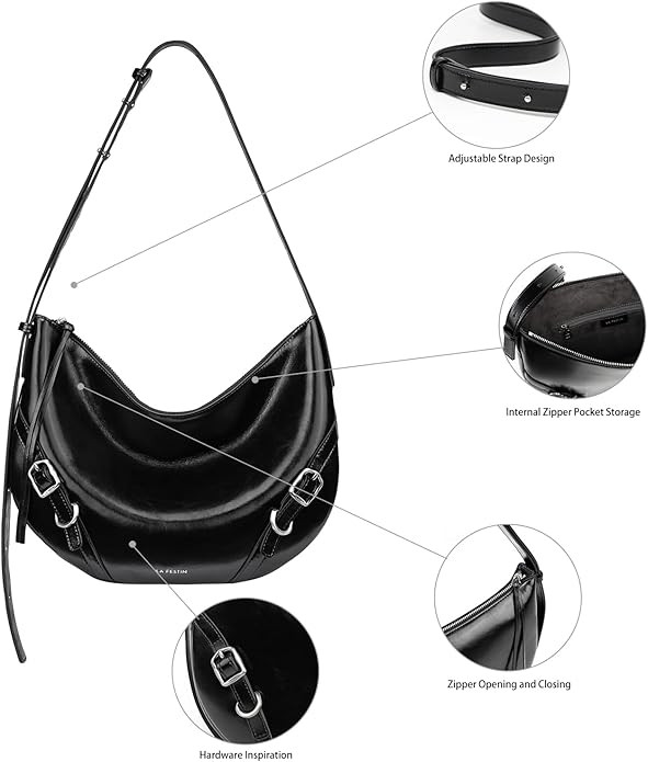 • ZIPPER CLOSURE Over the Shoulder Purse: The leather purses for women boast a convenient zipper closure to keep your belongings safe, while a hidden gem awaits inside a discreet zipper pocket specifically designed for your smaller essentials like credit cards and keys. No more frantic digging – everything has its place, allowing you to grab and go with confidence and effortless style
