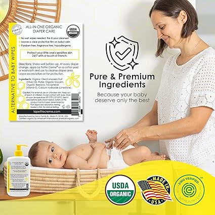 Organic Certified and EWG Verified: Meeting the highest standards of organic baby products, our La Petite Creme diaper lotion is a perfect choice in baby care products. The baby cream's formulation is designed with your baby's health in mind, is free from harmful chemicals, and is safe for delicate skin.